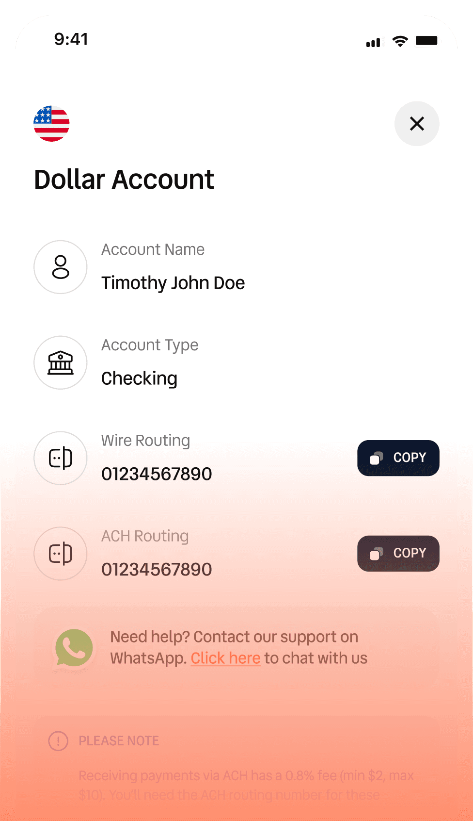 Generate your USD or EUR account details.