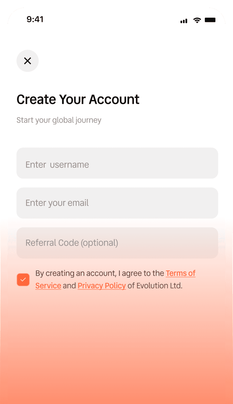 Create your Evolution account.