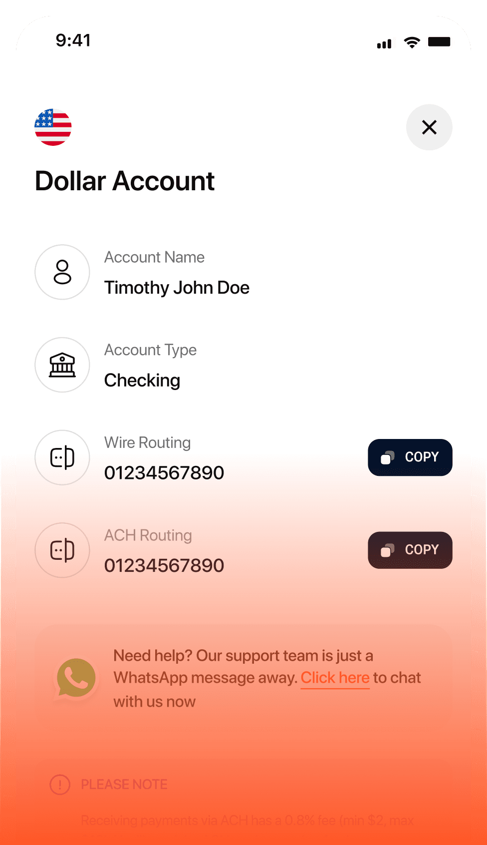 Receive payments globally or fund your account locally.